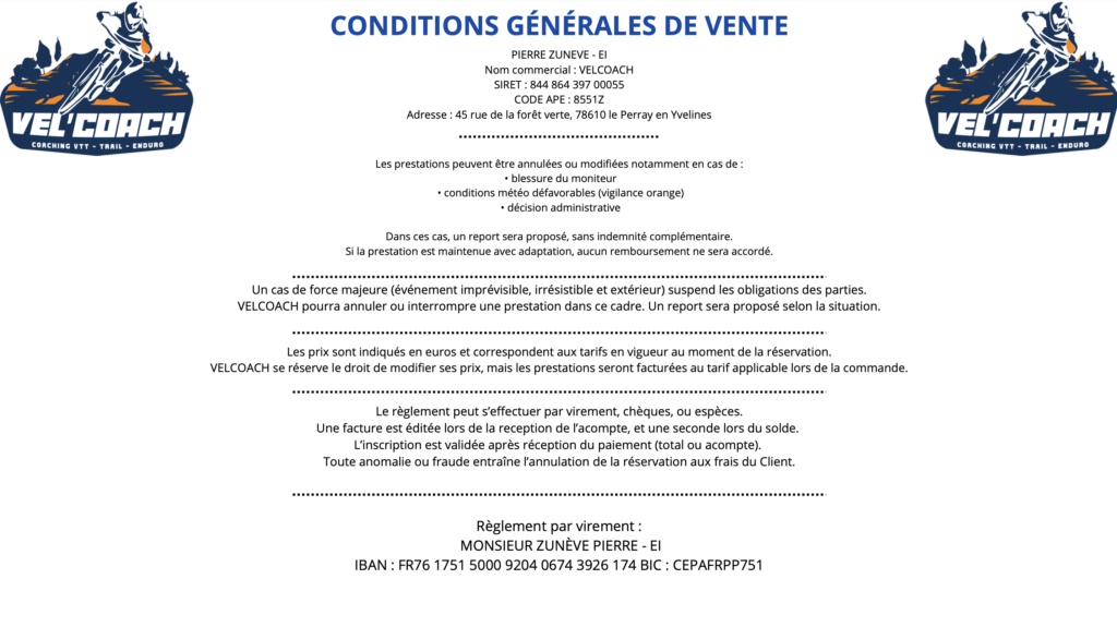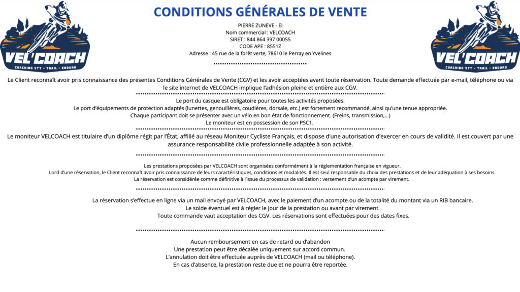 – Pierre ZUNEVE / VEL’COACH est assuré par les Moniteurs Cycliste Français en responsabilité Civile Professionnelle pour l’ensemble des prestations proposées.